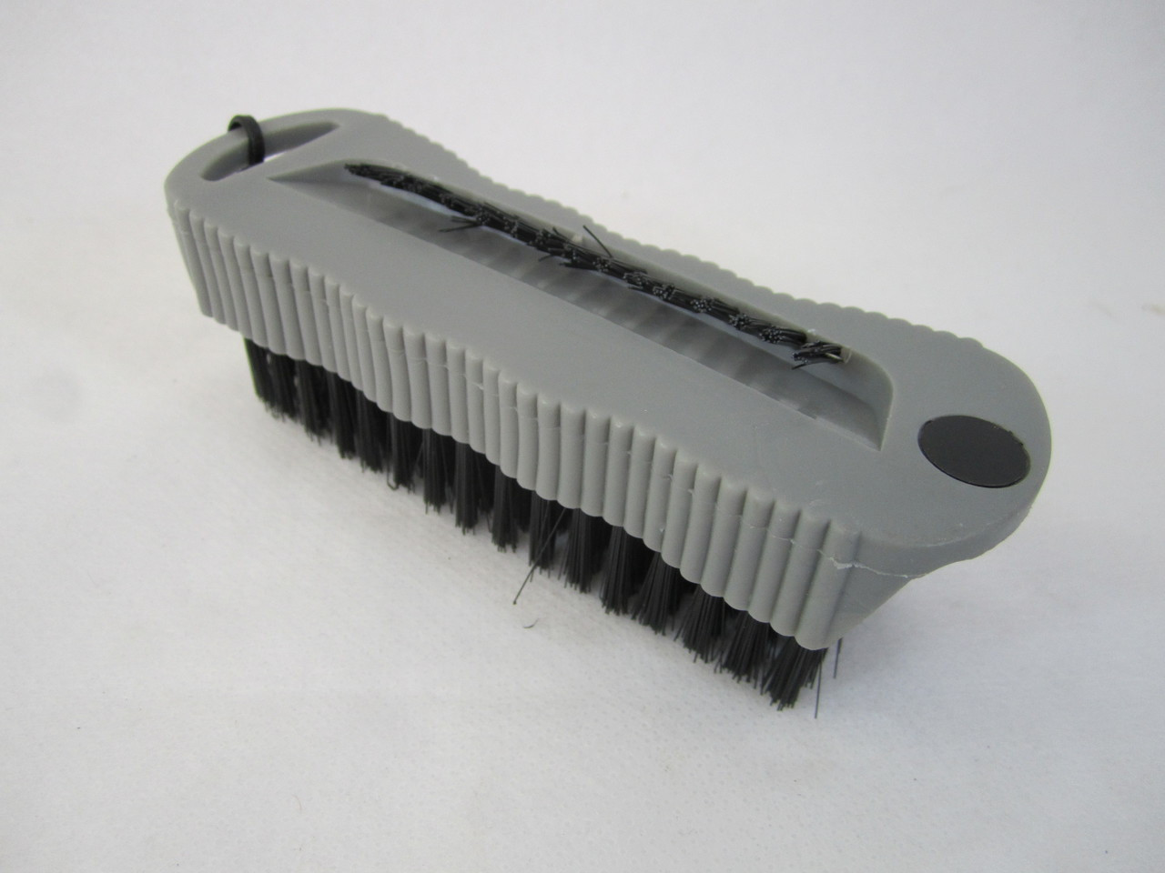 Double sided fingernail brush. Magnet for easy storage on toolbox or any metal surface. Grooved body handle for easy grip. Pack of 2
