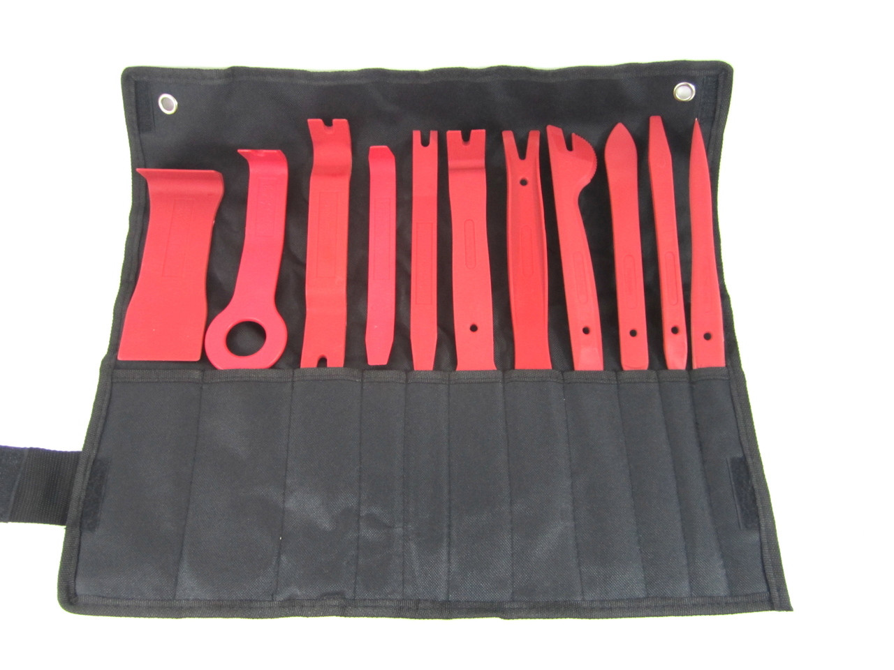 | 6" Remover - Wide Type, 7" Remover - Pull Type, 8" Remover - Handy Type, 7" Remover - Narrow Type, 8.5" Upholstery Clip Remover, 8" Angled Clip Panel Remover, 8" Flat Clip Panel Remover, 8" Panel Remover, 8" Sharp Panel Remover, 8" Clip Panel Remover and 8" Straight Panel Remover. Comes with a storage pouch. |